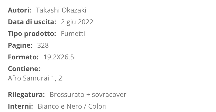 Il bianco e nero viene costantemente sporcato dal rosso del sangue. Una caratteristica utilizzata per diversi fumetti, ma che con Afro Samurai rende davvero tantissimo. Alla fine dell’albo c’è anche una bella intervista all’autore Takashi Okazaki che aiuta a comprendere al meglio l’opera.
